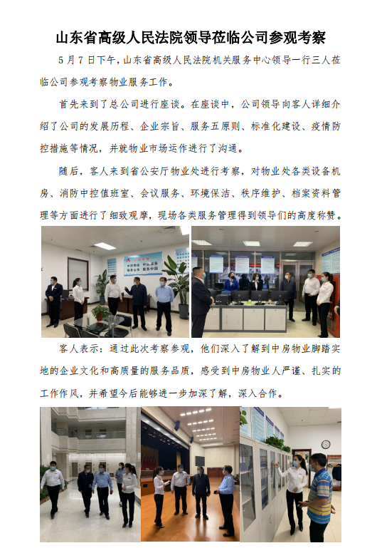 山東省高級人民法院領(lǐng)導(dǎo)蒞臨公司參觀考察