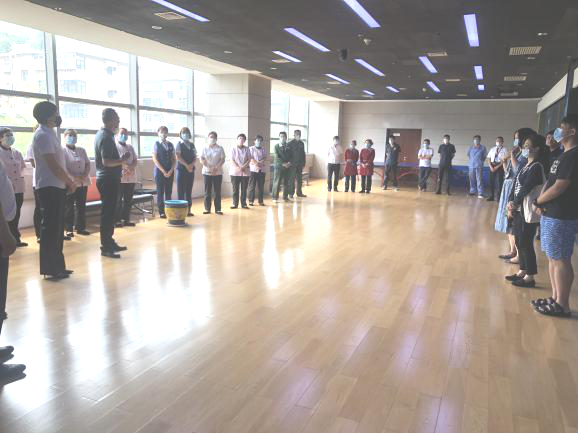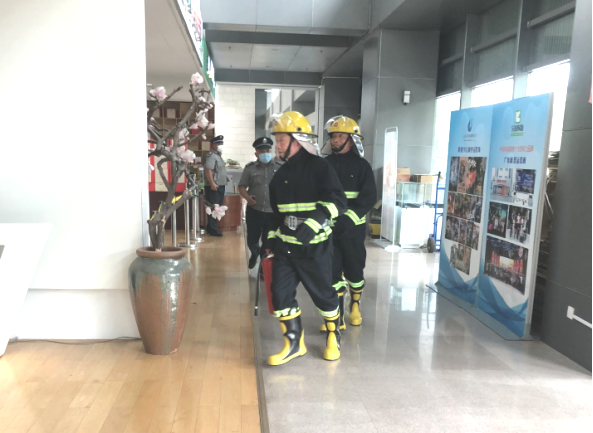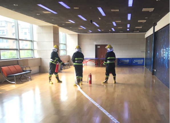 演練模擬在一樓夾層發(fā)生火災,消防中控室接警后立即通知物業(yè)秩序部人員到現(xiàn)場核實火情,確認火災后啟動《山東廣電產(chǎn)業(yè)大廈消防應急預案》,撲救初起火災,啟動消防廣播及聯(lián)動設(shè)備,撥打“119”報警電話(模擬),組織人員疏散逃生,做好現(xiàn)場警戒保護,人員疏散完畢演練結(jié)束。