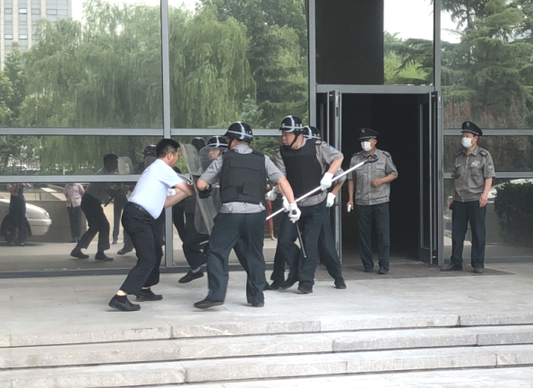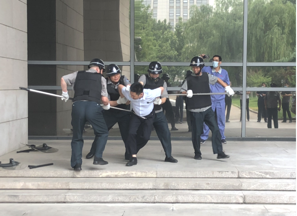 大廈一外租單位由于經(jīng)濟糾紛導致兩名社會人員攜帶兇器從大廈南門進入,到該單位進行恐嚇、報復,被值班秩序維護人員發(fā)現(xiàn),大廈迅速啟動防應急預案,對可疑人員進行驅(qū)離,并報110處置。