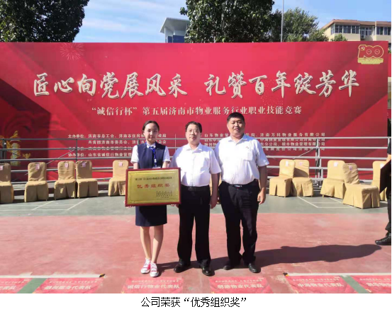 為弘揚(yáng)工匠精神,進(jìn)一步提升物業(yè)服務(wù)從業(yè)人員的業(yè)務(wù)技能,展現(xiàn)物業(yè)物業(yè)服務(wù)行業(yè)的專業(yè)形象和精神風(fēng)貌,6月18日、19日,以“匠心向黨展風(fēng)采,禮贊百年綜芳華”為主題的第五屆濟(jì)南市物業(yè)服務(wù)行業(yè)職業(yè)技能競賽在山東物業(yè)管理專修學(xué)院成功舉辦。董事長王秀琳蒞臨開、閉幕式,并為獲獎(jiǎng)團(tuán)隊(duì)頒發(fā)獎(jiǎng)牌。我公司組隊(duì)參加了電工、水暖工的比賽,并榮獲“優(yōu)秀組織獎(jiǎng)”。